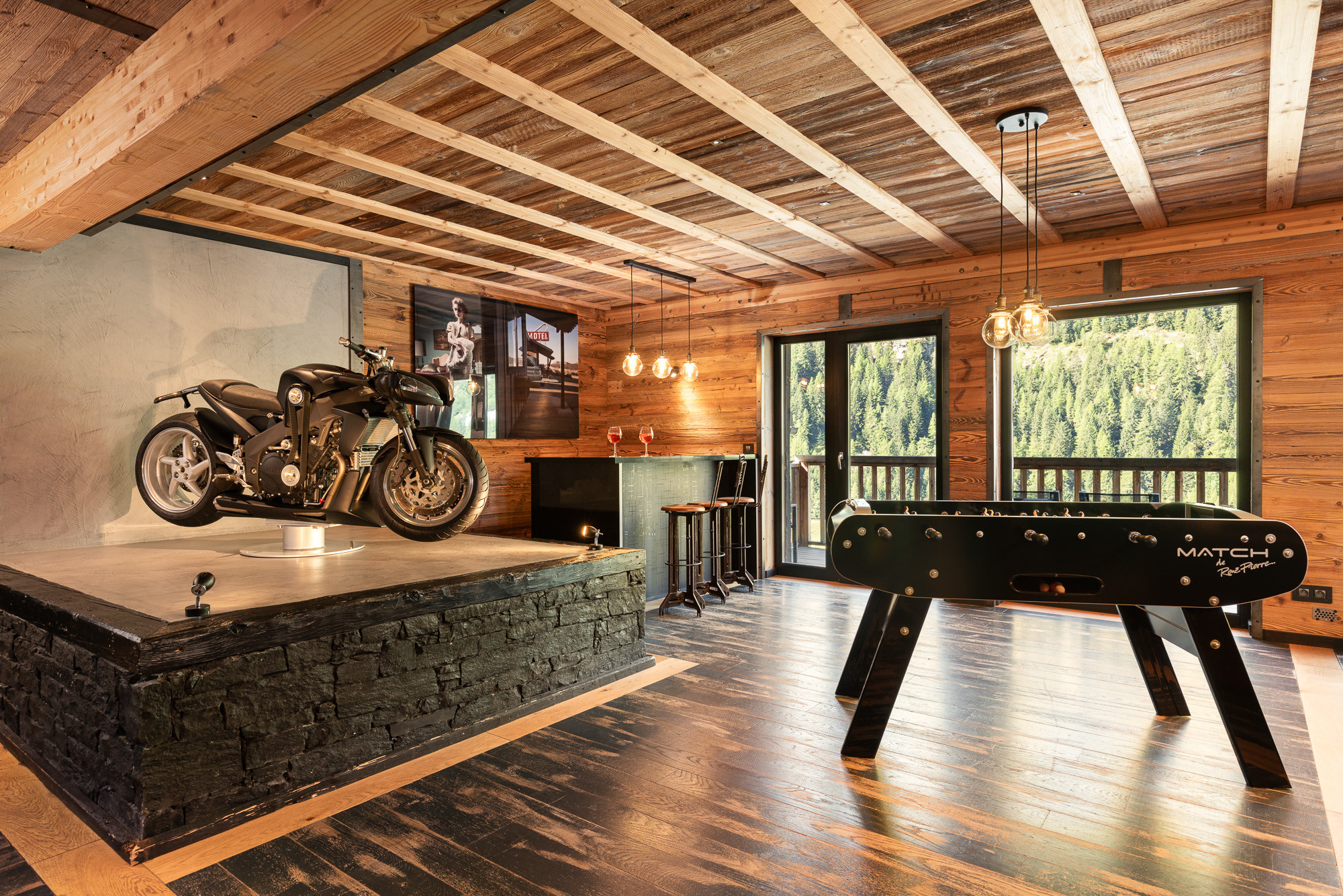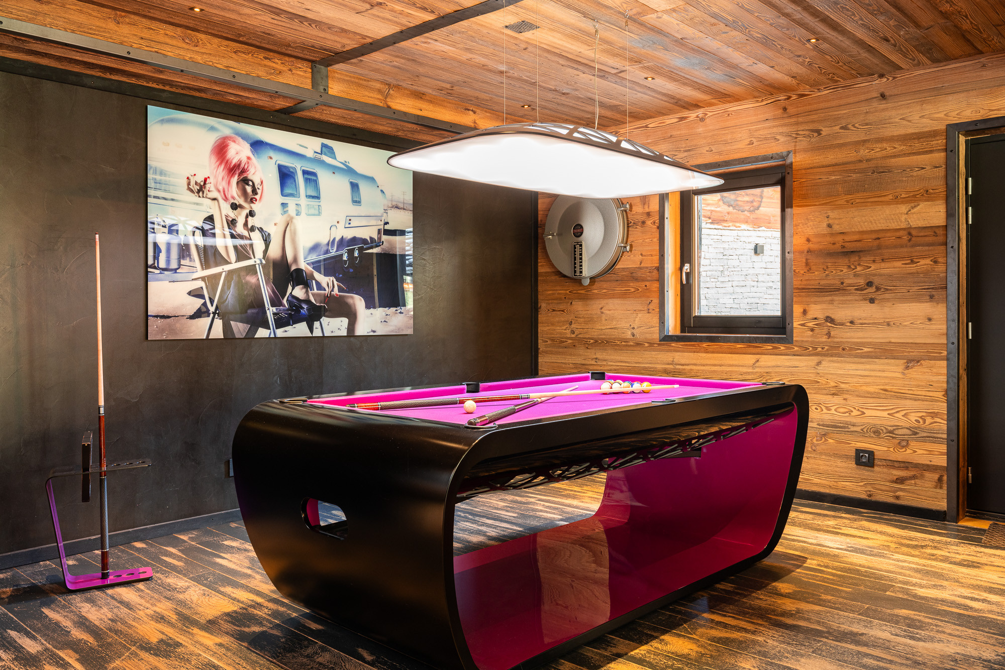 Le Chalet Babylon est l’un des hébergements les plus emblématiques de Tignes, où chaque détail surprend et émerveille. Véritable lieu de vie au caractère affirmé, il marie design audacieux et confort absolu : une moto suspendue en décoration, un bar privé, une table de billard, sans oublier le jacuzzi extérieur avec vue spectaculaire sur les montagnes. Plus qu’un simple chalet, c’est une véritable aventure alpine qui vous attend.