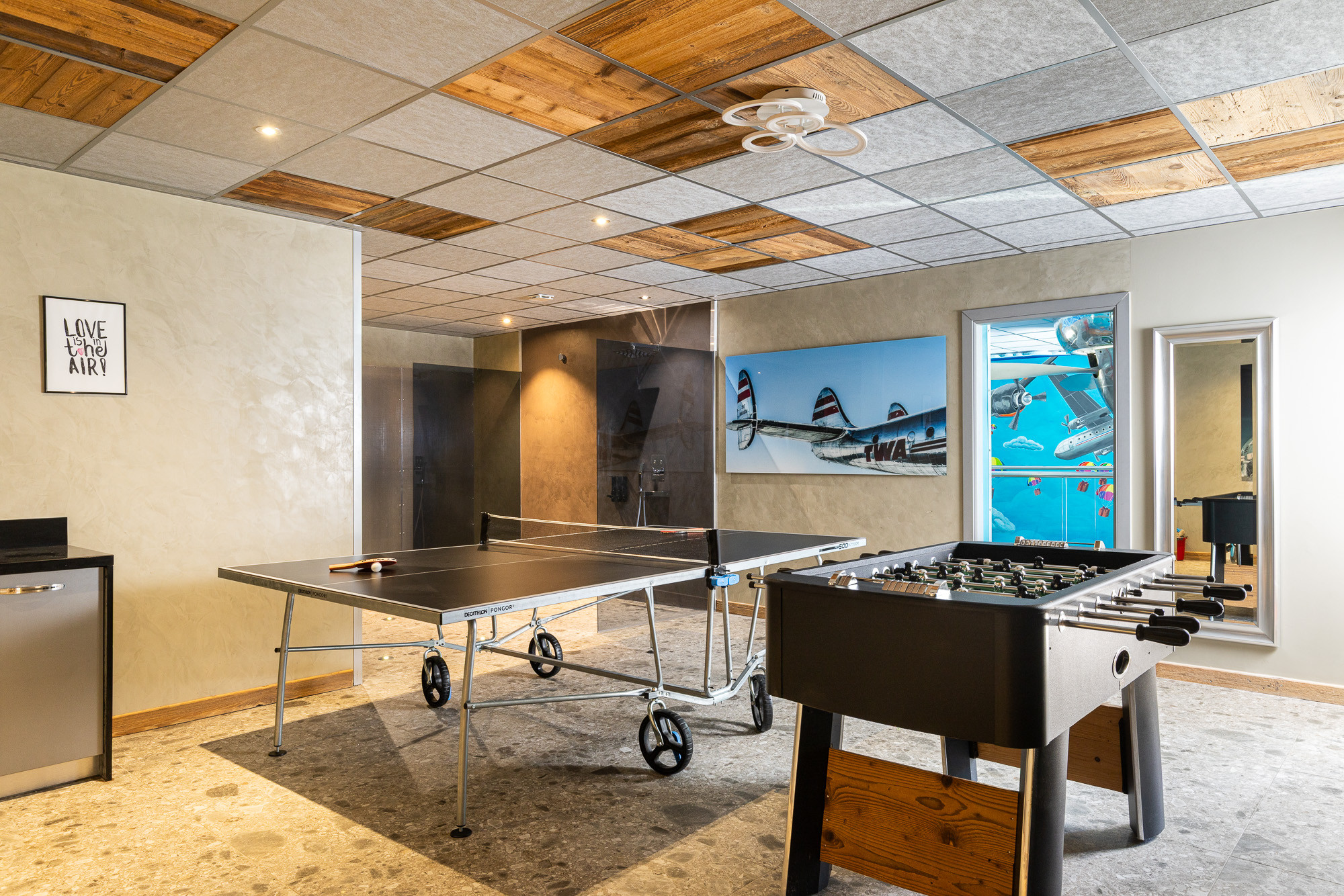 Les grands espaces de vie ouverts sont conçus pour partager des moments inoubliables. Pour ceux qui recherchent la quiétude, les larges balcons offrent un panorama exceptionnel sur les sommets environnants. À l’intérieur, chacun peut profiter d’une partie de baby-foot ou de ping-pong, tandis qu’un bar convivial prolonge les instants de détente.